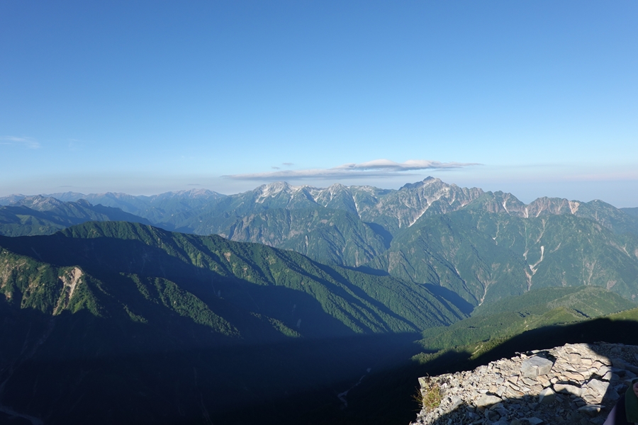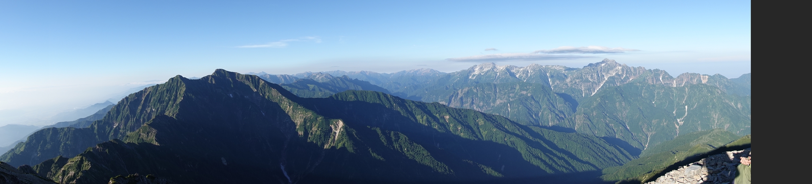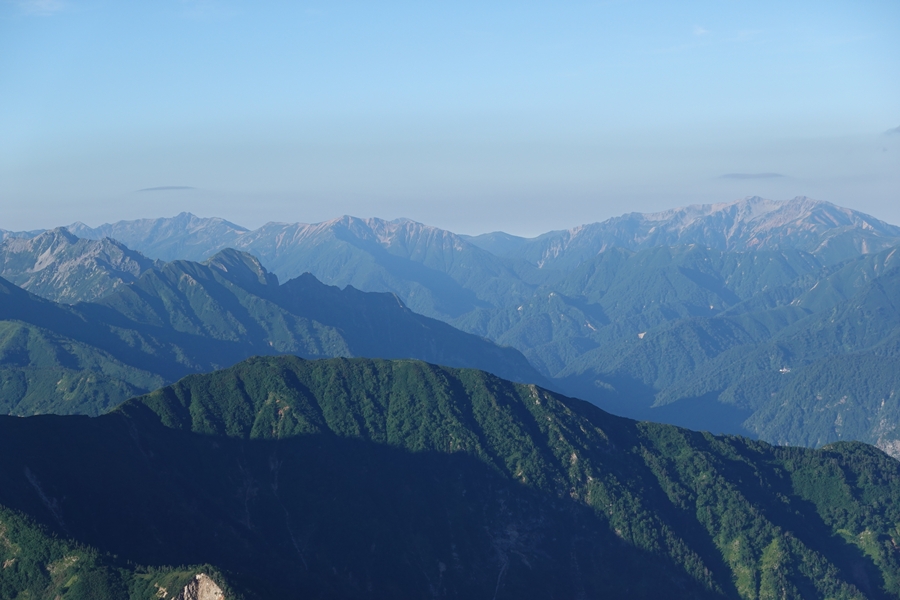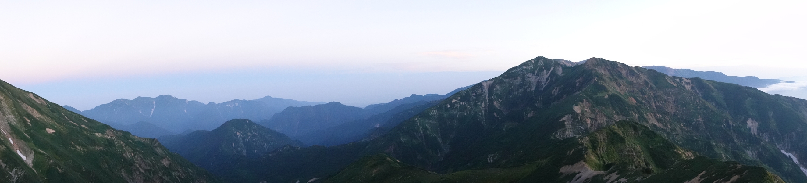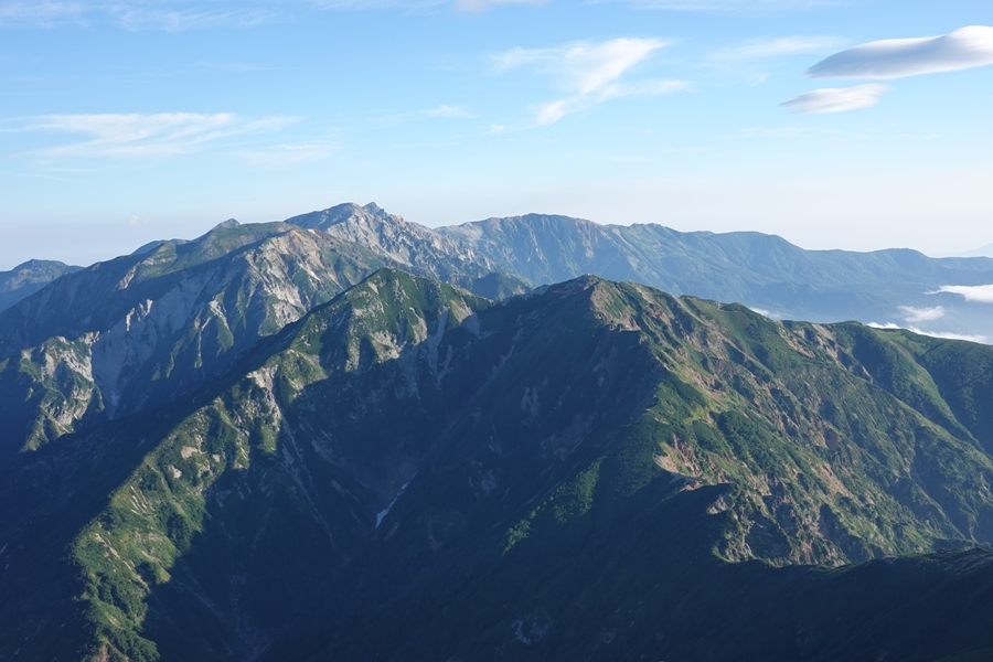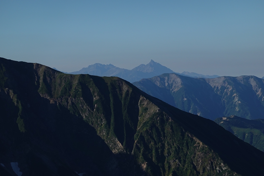 後立山連峰。 歩けないけどどこまでも歩いていけそうな山並み。 |