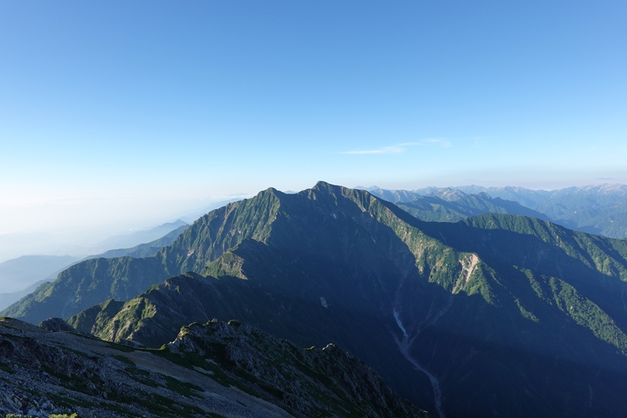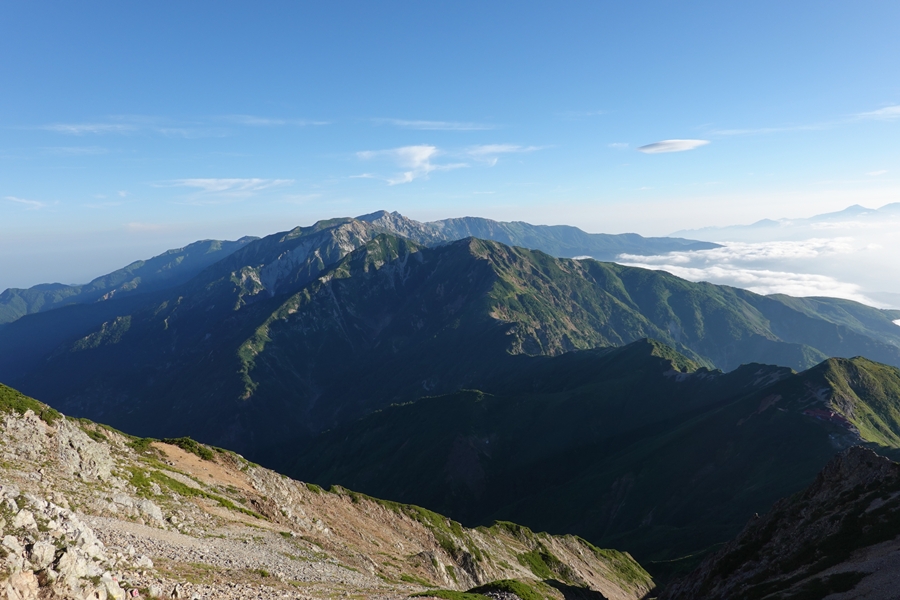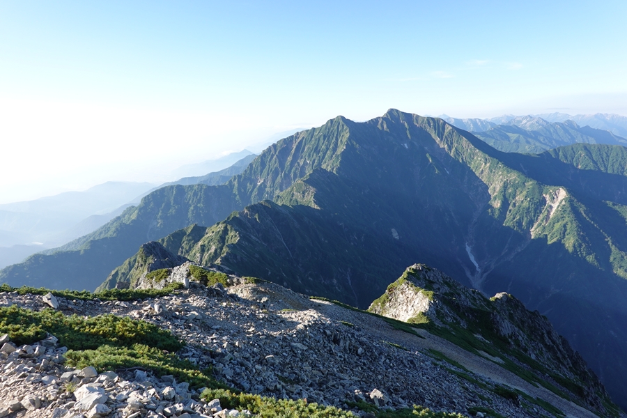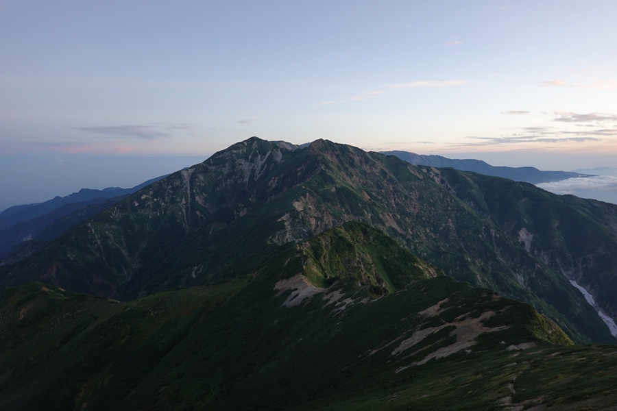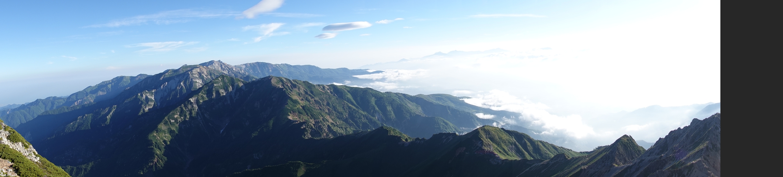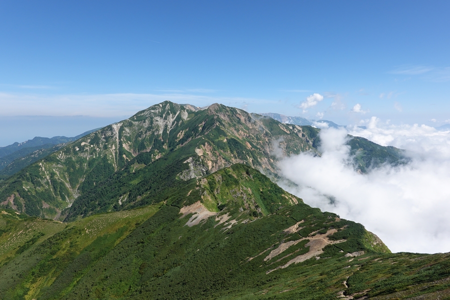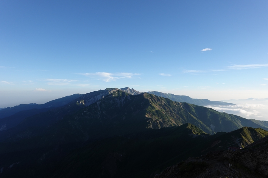 後立山連峰。 歩けないけどどこまでも歩いていけそうな山並み。 |