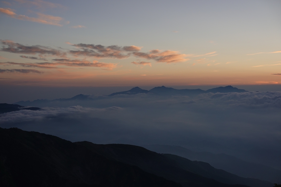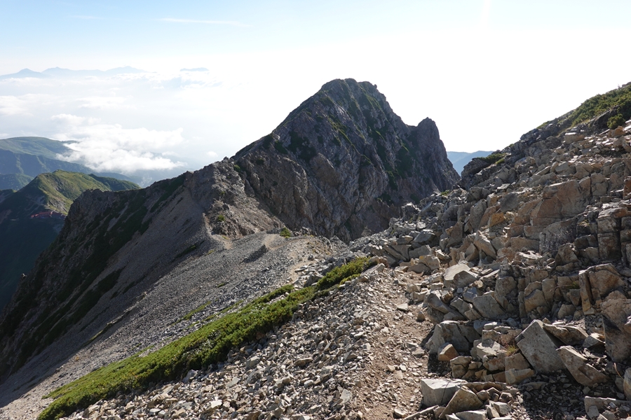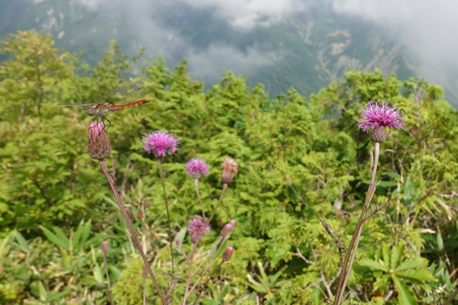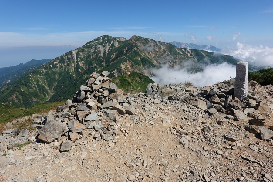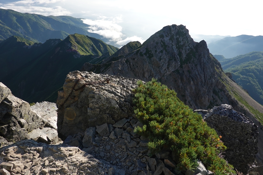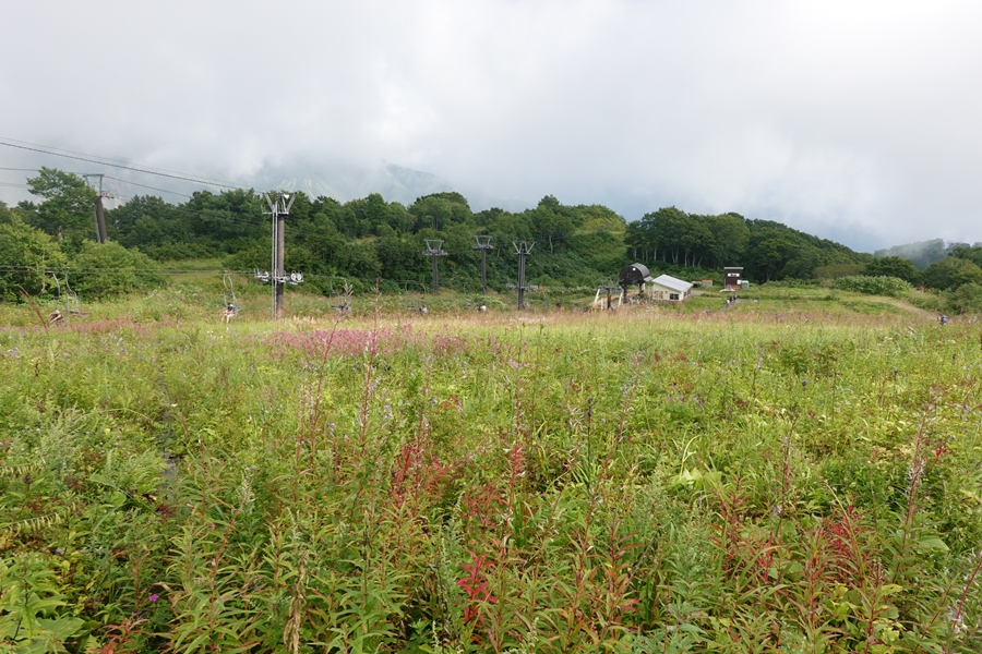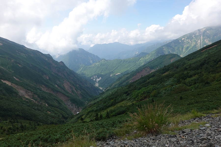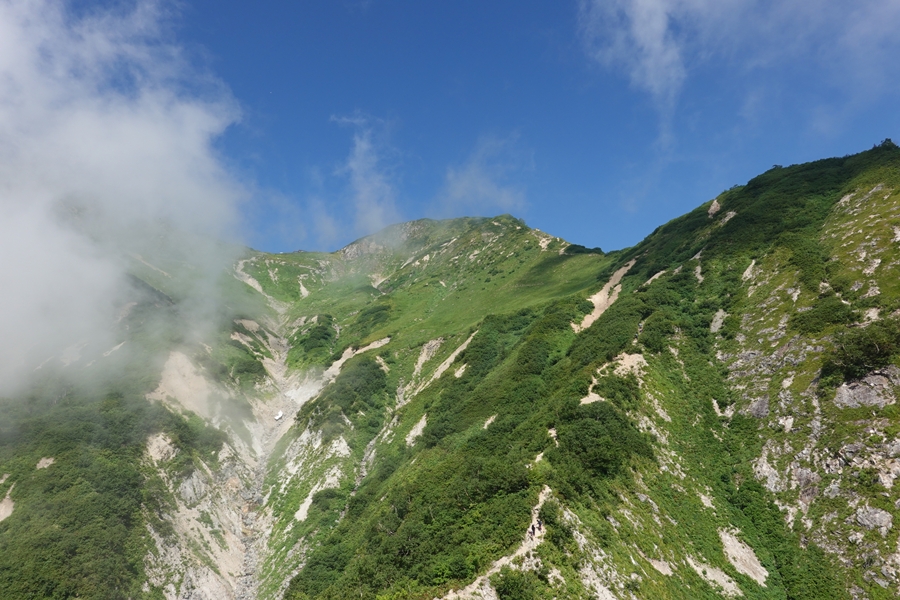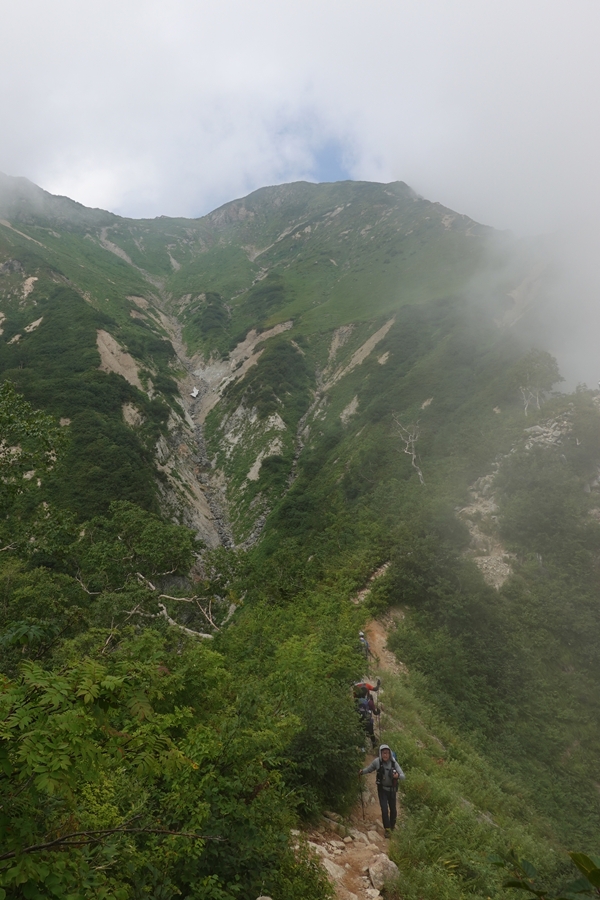 稜線沿いに出ると展望が開けました。 ガスは白馬村側で止まってる感。 |