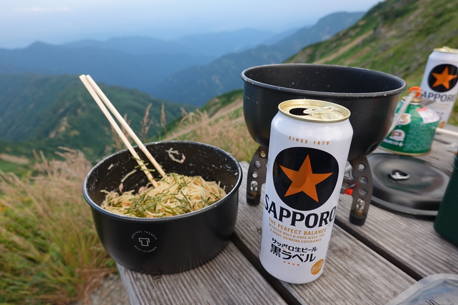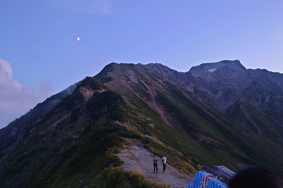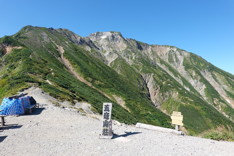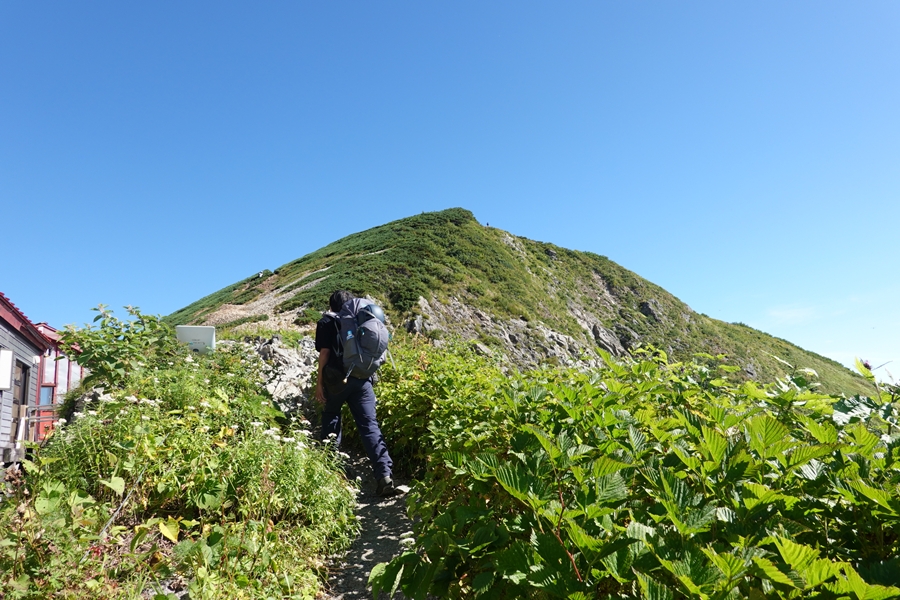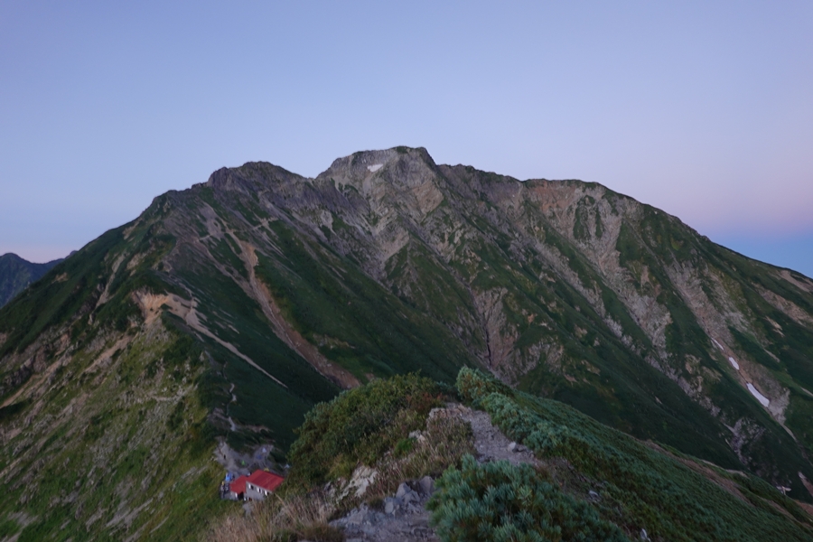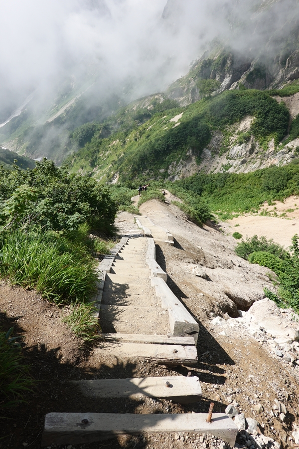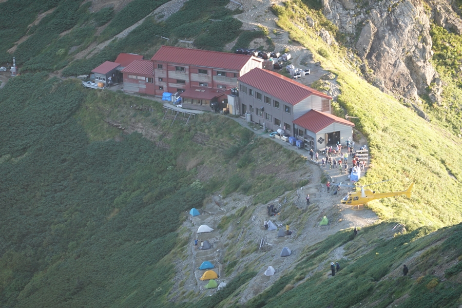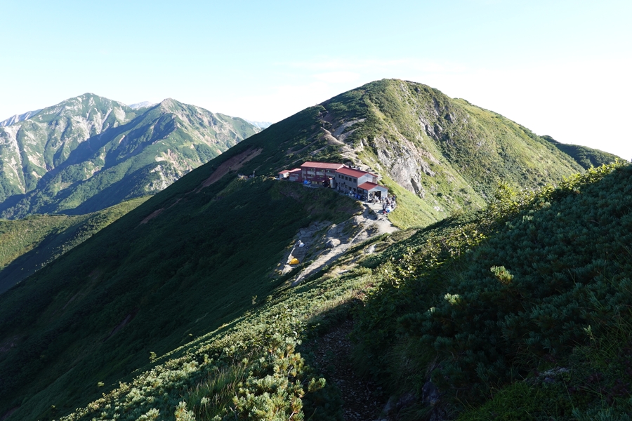 五竜山荘も目前〜。 久々のテント泊装備が重く疲れました。 |
