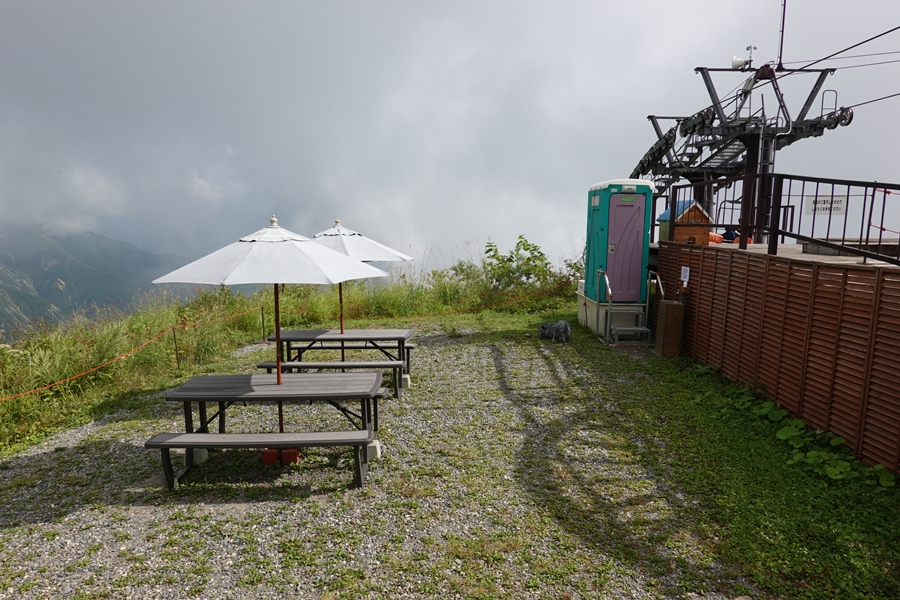 展望リフトの終点。 登山リフトには珍しくベンチとトイレがありました。 |