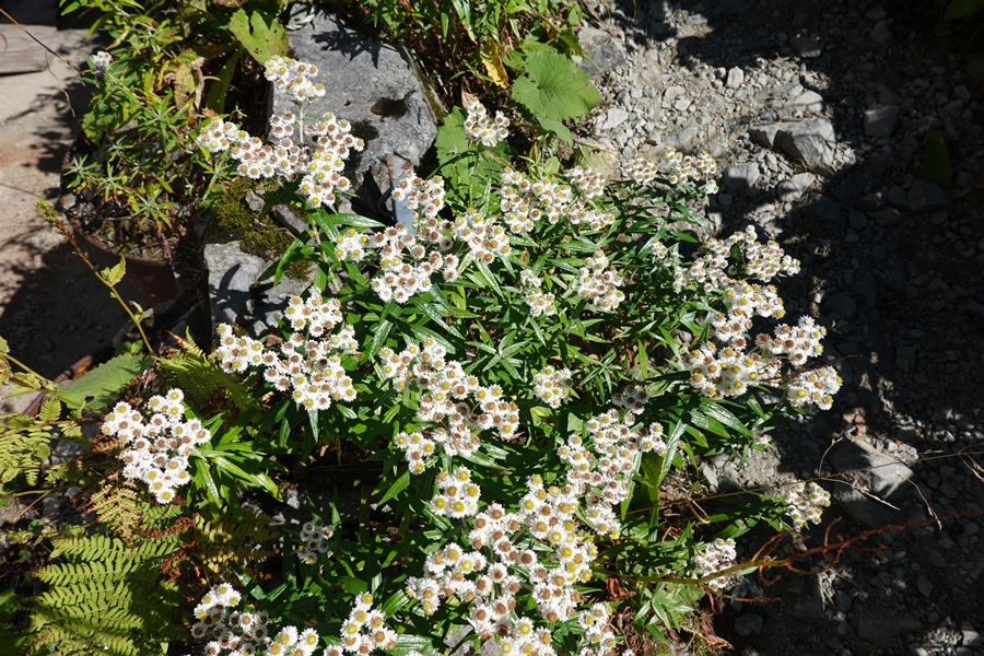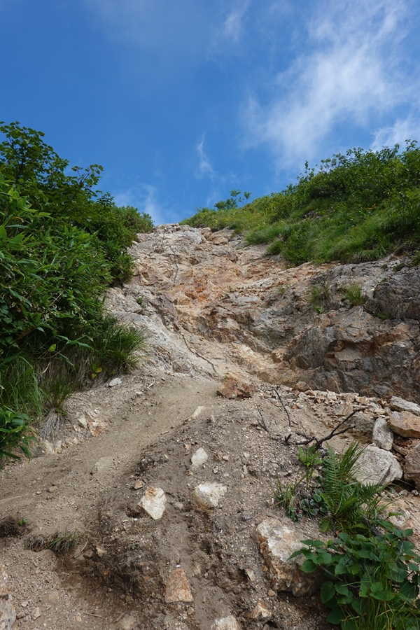 出だしからアルプス平の植物園でなくても沢山高山植物が咲いていて、登山道はがっつり整備されてますね。 |